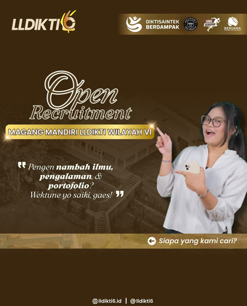 LLDIKTI Wilayah VI membuka kesempatan bagi mahasiswa aktif untuk mengikuti Program Magang Mandiri Tahun 2025. Program ini ditujukan bagi mahasiswa dari perguruan tinggi di lingkungan LLDIKTI Wilayah VI Jawa Tengah, yang ingin menambah pengalaman, ilmu, serta memperluas portofolio di bidang …