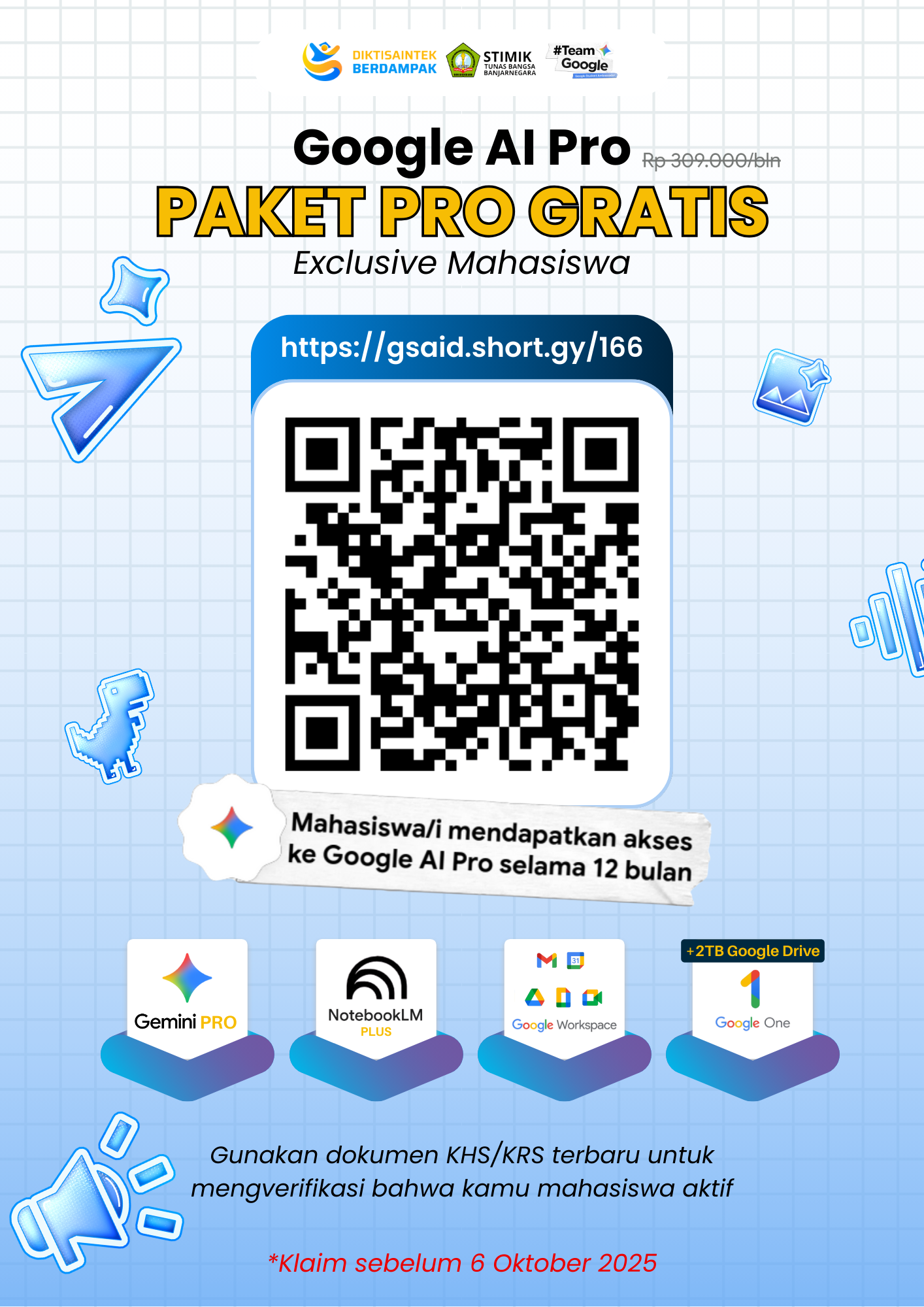 STIMIK Tunas Bangsa kembali menghadirkan kabar baik bagi mahasiswanya. Dalam rangka mendukung transformasi digital di lingkungan kampus, mahasiswa STIMIK Tunas Bangsa mendapatkan kesempatan eksklusif untuk mengakses Google AI Pro secara gratis selama 12 bulan penuh. Program ini menjadi salah satu …